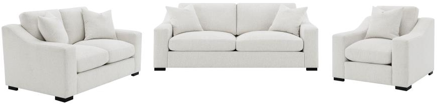 Sofa set with sculpted track arms and sand textured upholstery for soft and modern appeal
