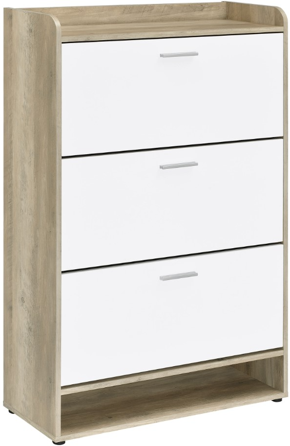 Three-tier shoe cabinet for organized footwear storage