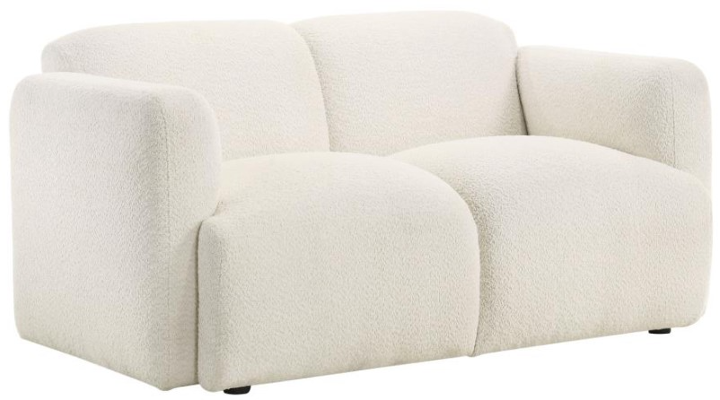 This sculpted loveseat brings bold softness and inviting texture to modern spaces. Its low-profile frame is wrapped in richly textured fabric with a cozy, tactile feel. Rounded track arms and a smooth, contoured silhouette create a cocoon of comfort.Read More