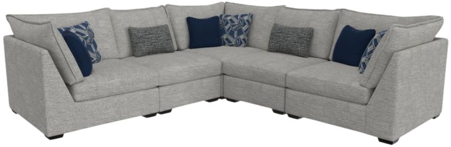 The Corinthian Furniture Bianca 5-Piece Gray Curved Sectional offers a modern, spacious design with its curved shape, perfect for creating a cozy and inviting seating area. The soft gray upholstery complements various décor styles, while the ample seating provides comfort for family gatherings or relaxation.Read More