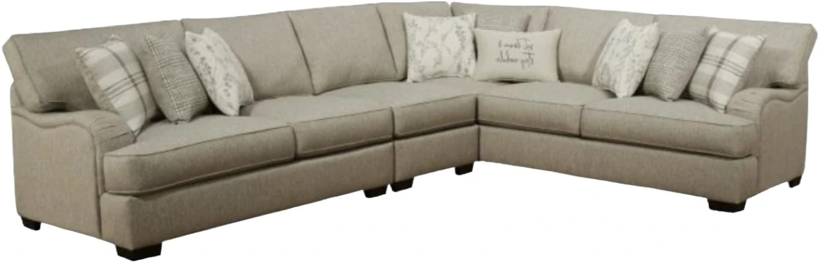 The Corinthian Furniture Brentwood 3-Piece Gray L-Shape Sectional features a sleek, L-shaped design with soft gray upholstery. Offering plenty of seating, it combines style and comfort, making it an ideal choice for creating a welcoming and spacious living area for both lounging and entertaining.Read More