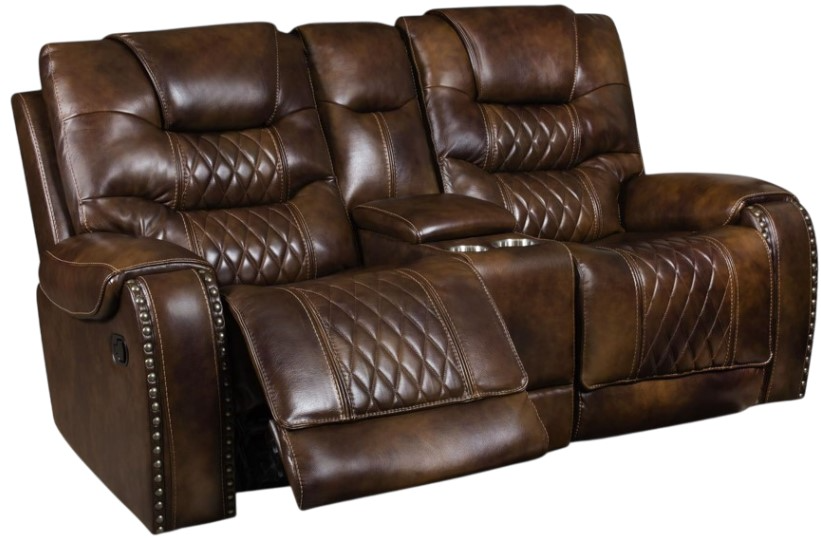 The Corinthian Furniture Brookshire Carmel Manual Reclining Loveseat with Console offers a cozy seating experience with manual reclining functionality. Featuring a built-in console with storage and cupholders, it combines comfort and practicality. The soft Carmel fabric adds a warm, inviting touch to any living space.Read More