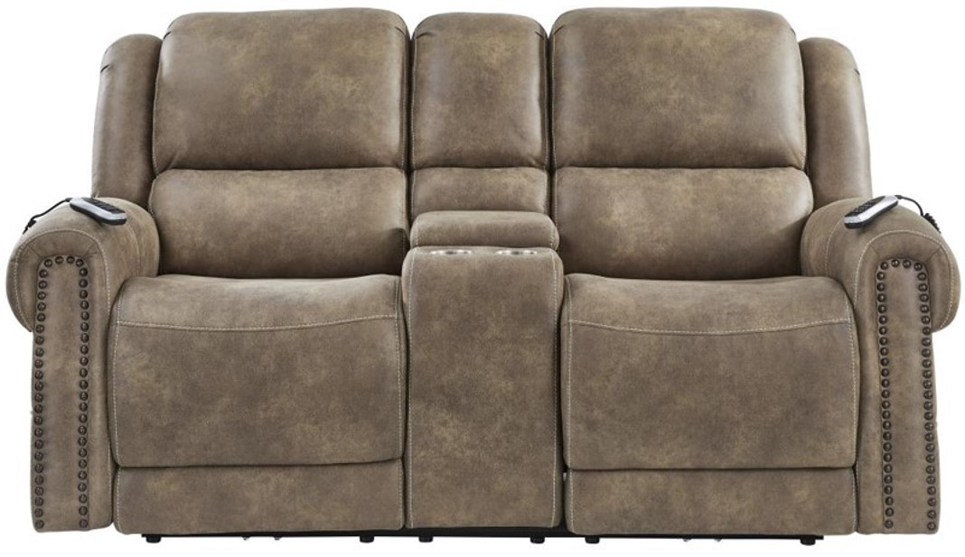 The Corinthian Furniture Burr Ridge Hazelnut Power Reclining Loveseat with Console offers comfort and convenience with its power reclining mechanism and built-in console for added storage. Upholstered in a warm hazelnut fabric, it provides a cozy and functional seating option for any living room, perfect for relaxation and movie nights.Read More