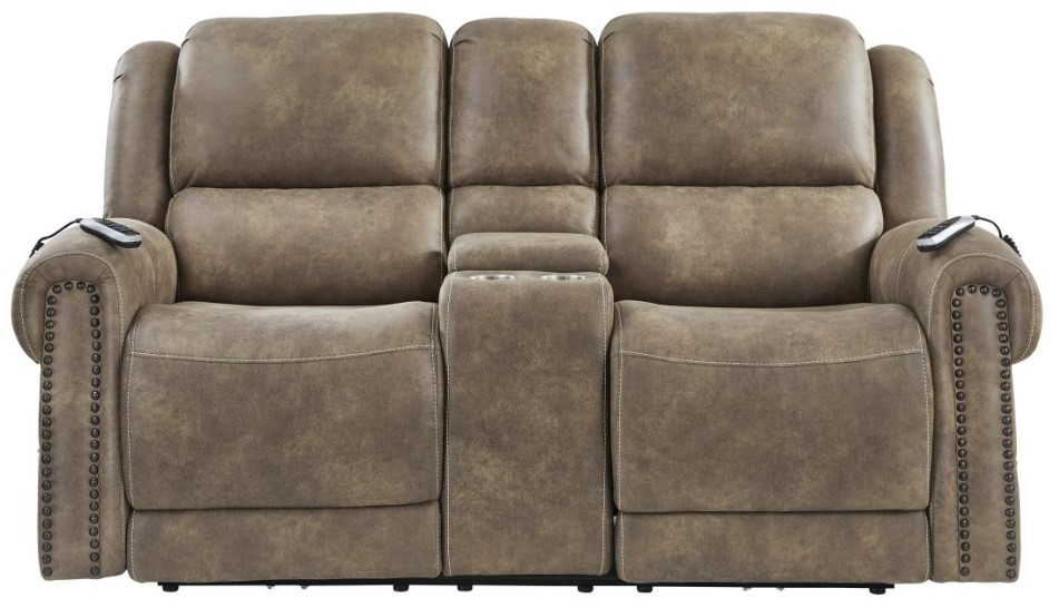 The Corinthian Furniture Burr Ridge Hazelnut Power Reclining Loveseat with Power Headrest, Console, and Lumbar provides ultimate comfort with power recline, adjustable headrest, and lumbar support. The built-in console offers convenient storage and cupholders, while the warm hazelnut color enhances the aesthetic and functionality of any living space.Read More