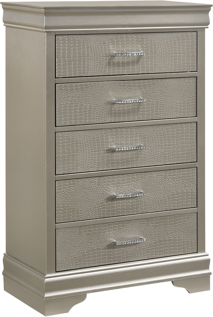 This Amalia Chest embodies a refined elegance with its soft silver hue and luxurious textures, perfect for creating a serene and sophisticated sanctuary. All feature a textured finish that adds depth and character to the suite.Read More