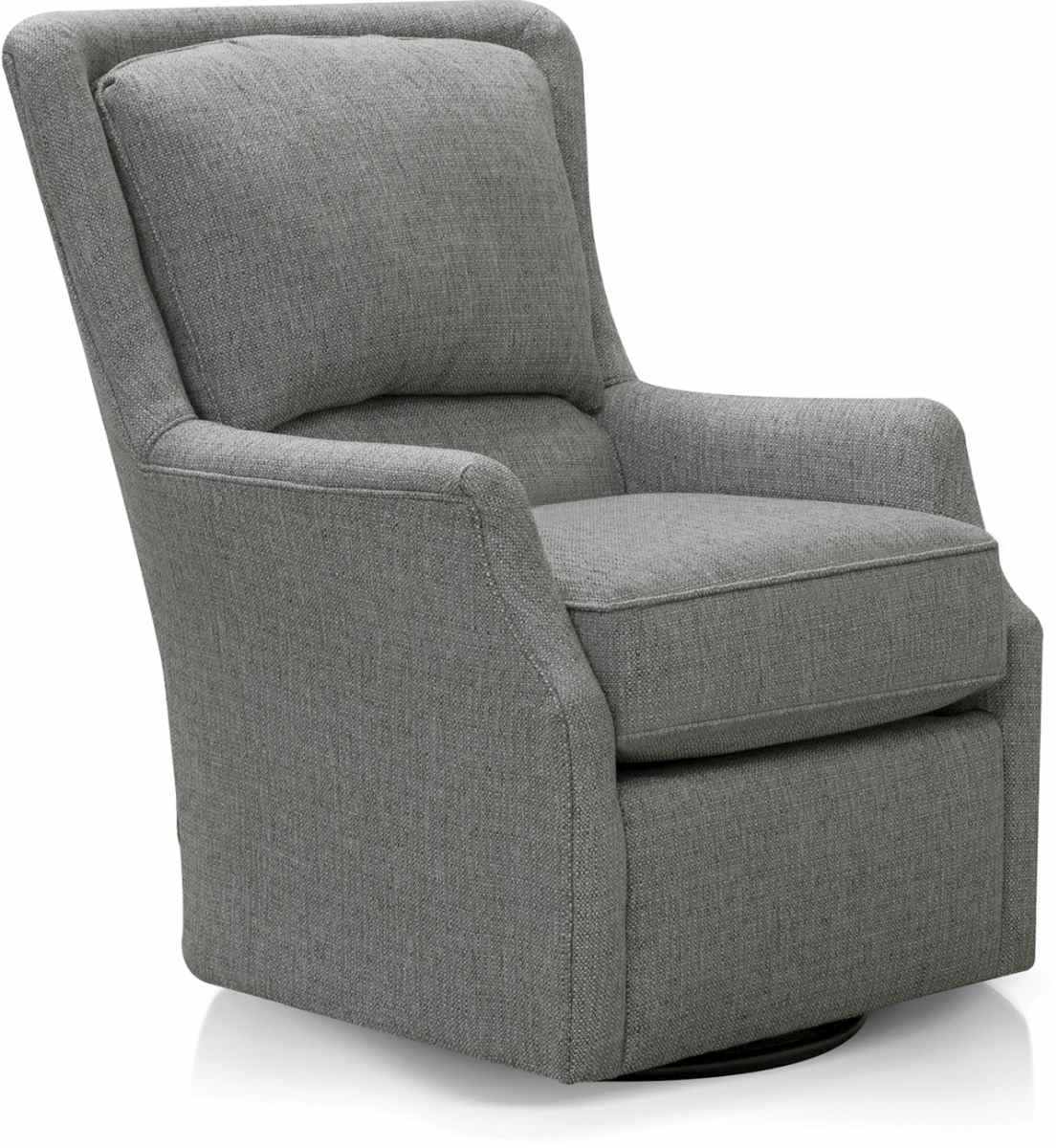 This accent silhouette features a tapered wood leg, plush back, and stylish cutaway arm. Truly a versatile style. The collection includes a swivel chair, stationary chair and ottoman. Take a look at Louis to see this silhouette in leather.