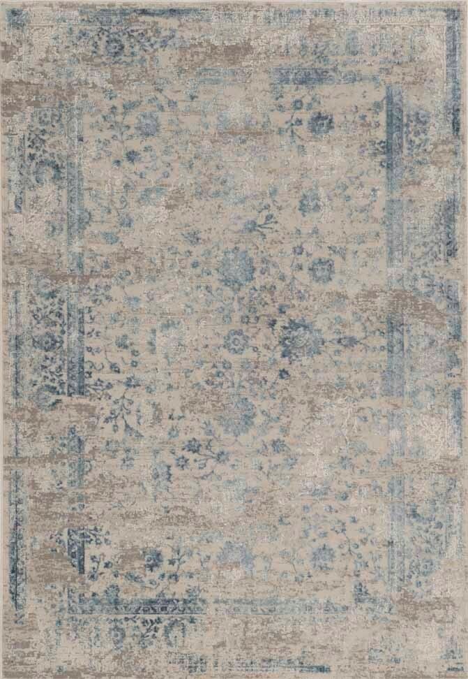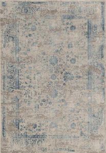 The KAS Generations Blue/Grey Brigid 7'7" x 10'10" Area Rug is machine-woven of polyester and viscose with no backing. Made in Turkey. Vacuum on floor setting only. Spot clean stains with mild soap and water.Read More