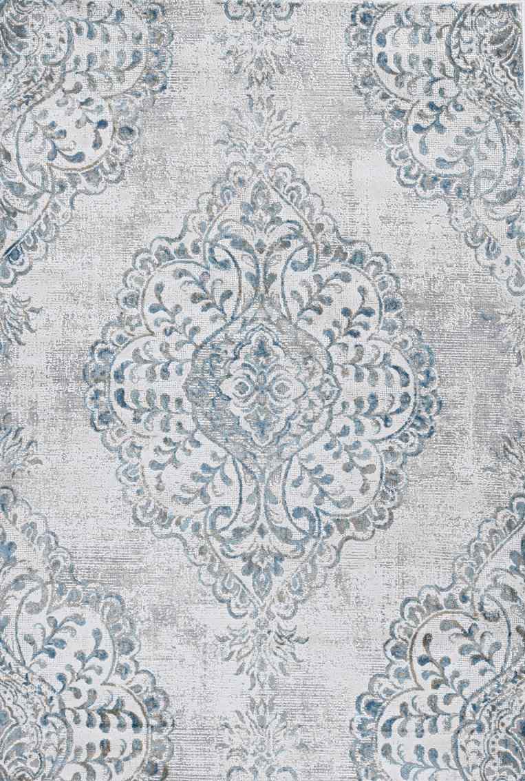 The KAS Generations Ivory/Teal Charlotte 12' x 15' area rug is machine woven of polyester with viscose highlights and no backing. Made in Turkey. Vacuum on floor setting only. Spot clean stains with mild soap and water.Read More