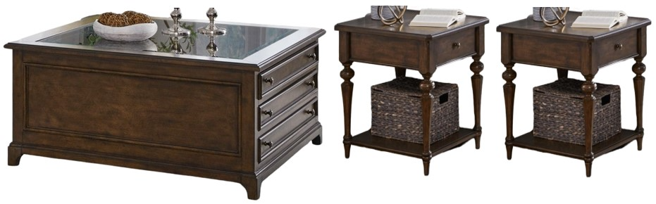 Give your home a personal touch that reflects your passions and personality with the Arden Road optional 3 piece set. Meticulously crafted using Poplar solids and Rustic Alder veneers, this set features a Satin Cherry finish and includes the square collector cocktail table and two drawer end tables.Read More
