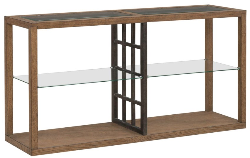 At its heart are two beveled-edge tempered glass panel inserts adorning the top, offering a sleek and stylish focal point for your room. The square block legs lend a sturdy foundation while seamlessly flowing into an open bottom shelf, providing ample space for storage or displaying your favorite decor pieces. The shelf is cleverly divided by a metal checkerboard accent, adding a unique and eye-catching design element to the table. With the addition of casters, this cocktail table offers not only style but also practicality. Easily mobile when needed, it provides versatility for rearranging your space or accommodating gatherings with ease. The Bayhill Trellis cocktail table, with its attention to detail and unique design, will be a standout piece in any home.