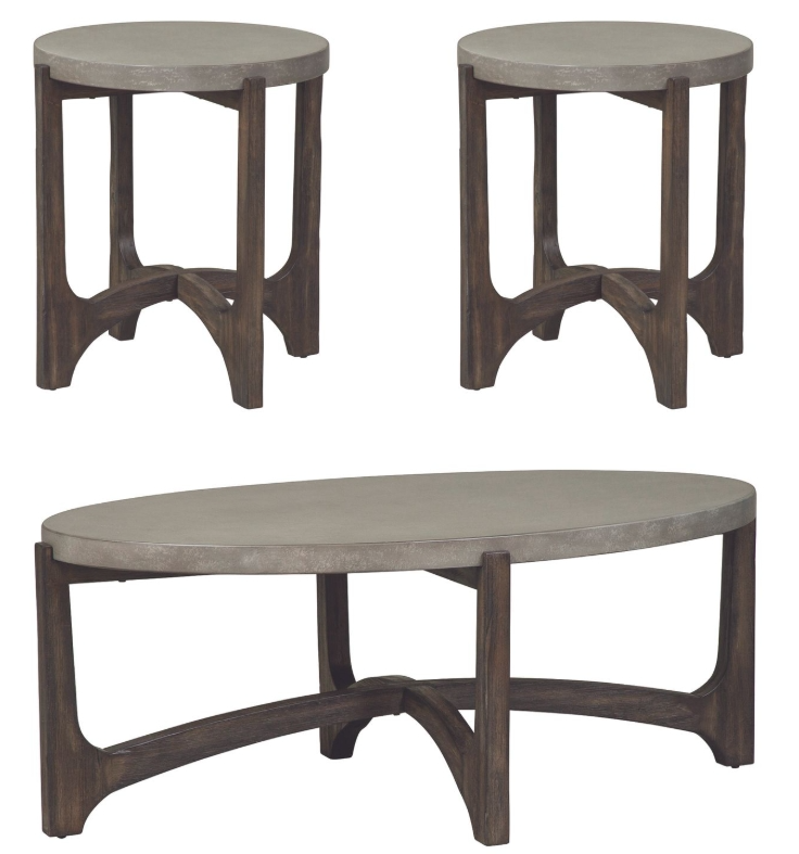 Offer an urban element to your room with Cascade collection. Crafted of eucalyptus and birch solids with concrete composite tops, features a wire brush rustic brown finish, appealing soft shapes catering to the contemporary feel, anchored by interlocking shaped legs.Read More