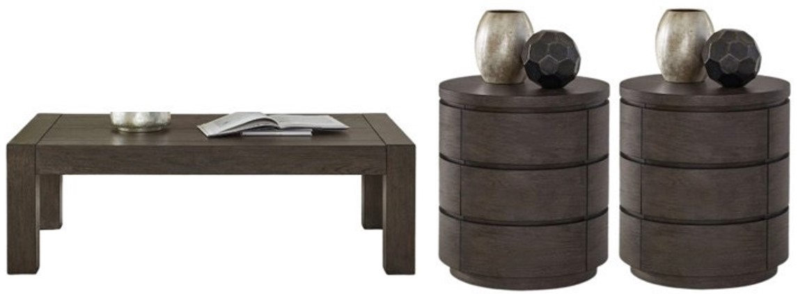 Turn your house into a home with the Cascade Falls optional 3 piece set. Crafted with excellence using Rubberwood solids and Split Heart White Oak veneers, this set features a Satin Espresso finish and includes the rectangular cocktail table and 2 round end tables. The cocktail table boasts a planked top.Read More