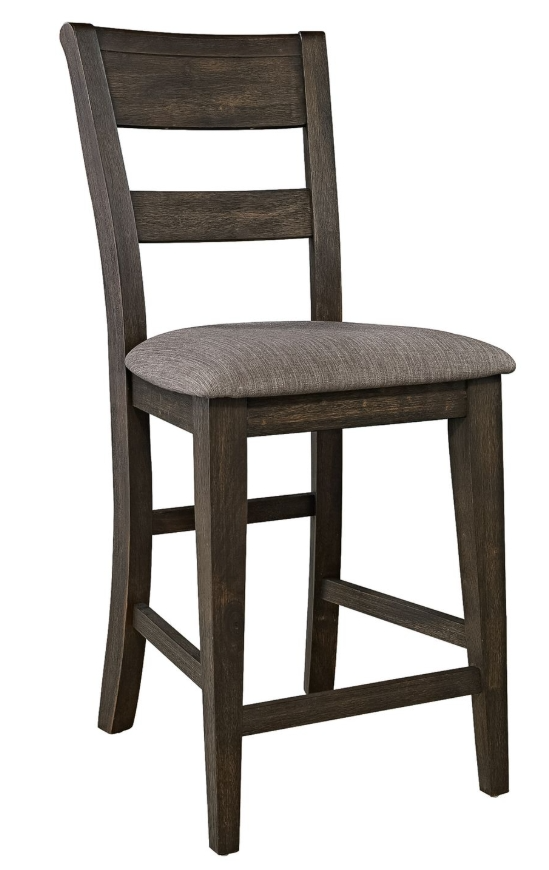 Sit in comfort and indulge in rustic style with the Double Bridge slat back counter chair. Crafted of rubberwood solids, this piece features a dark chestnut finish, grey linen upholstery on the seat, and nylon chair glides to protect your flooring.Read More