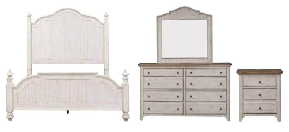 Liberty Furniture Farmhouse Reimagined 4-Piece Antique White Queen Poster Bedroom Set