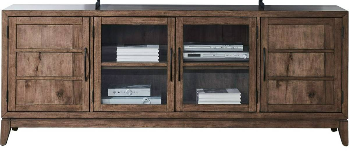 The Liberty Furniture Shaker Lakes TV Console in Harvest Brown offers timeless style and practicality. Crafted from quality wood, it features a warm brown finish, open shelving, and cabinets for organized storage, making it a perfect centerpiece for any entertainment space.Read More