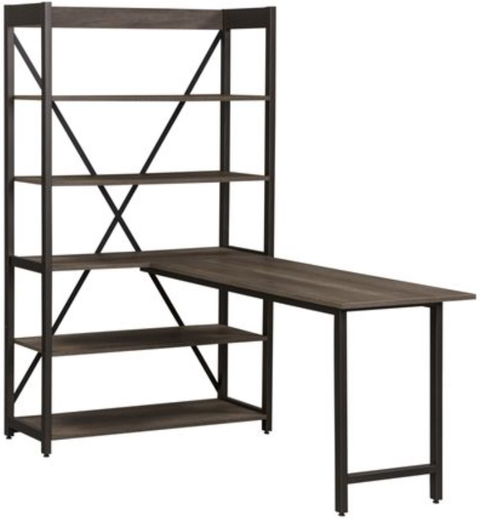 Work from home or your office in style with the Tanners Creek desk and bookcase set. Crafted of a rubberwood solid frame and melamine, this piece features a Greystone finish, open ends finished in a dark pewter metal finish, and a floating shelf design. Bookcase has X metal strip accent, desk bolts to bookcase for an L-shape feel.Read More