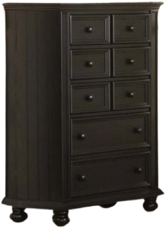 The Cape COD ebony drawer chest combines timeless elegance with functional storage. Crafted from quality wood in a rich ebony finish, it features multiple spacious drawers, classic molding details, and sturdy construction, offering both sophistication and practicality for any bedroom decor.Read More
